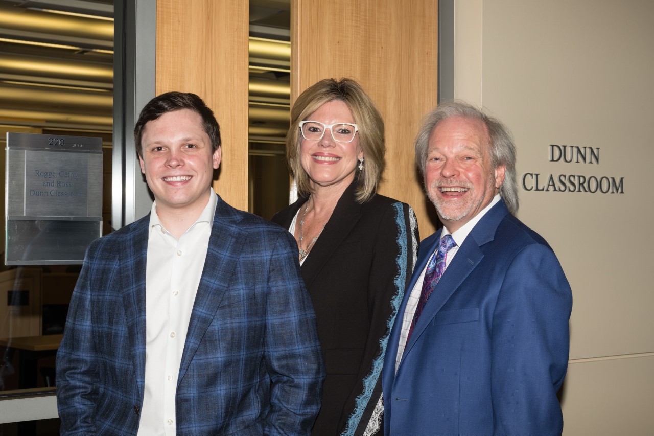 DALLAS – SMU is recognizing Dallas trial attorney Rogge Dunn’s long–term support and contributions to the university with the naming of the Rogge, Cathy and Ross Dunn Classroom in the James M. Collins Executive Education Center.